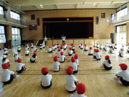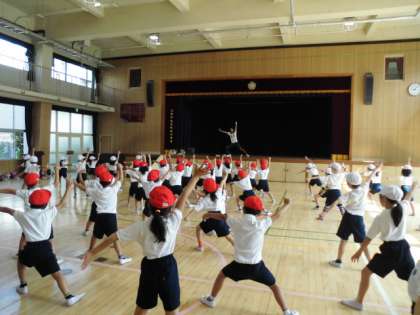 1・2年生は、講堂で、リズムダンスをしました。