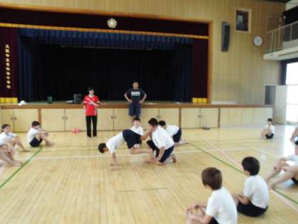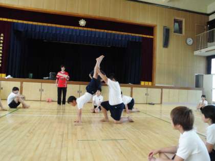 主体的に取り組む活動で、ほとんどの子どもたちは、組体操の練習を楽しんでいます。