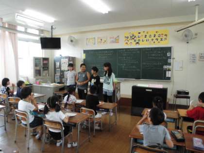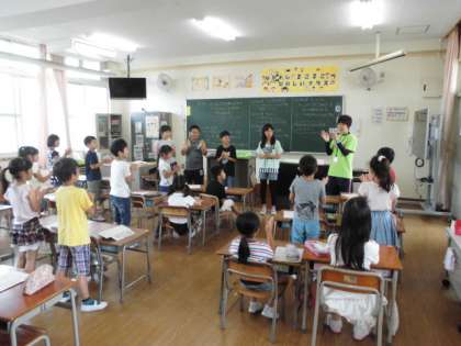 ひがももタイム(朝の時間)に応援団児童が各教室へ行き、応援の仕方を伝えて練習をしていました。