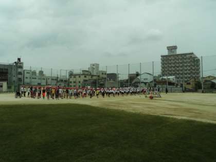 曇り空で時折雨がぱらつきましたが涼しくて、子どもたちの全体練習への集中力が高まりました。