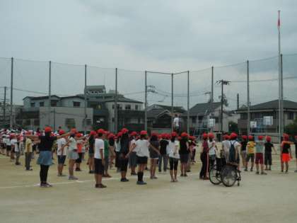水曜日のひがももタイム(朝の時間)は児童集会ですが、今朝は運動会に向けての全体練習を行いました。