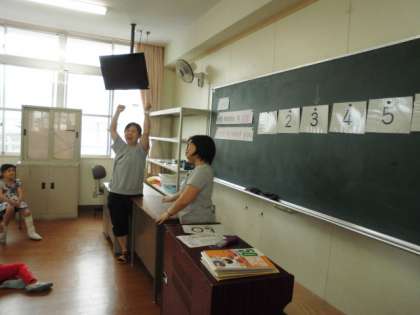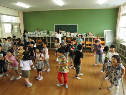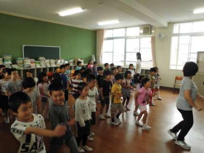 今日は、C-NETのマリー先生にイングリッシュタイムから5時間目まで、順に3・2・6・5・1・4年生を指導していただきます。