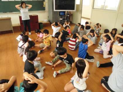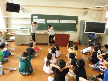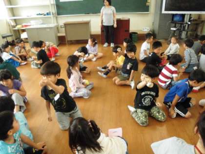 「One、Two、Three・・・」と、元気な声で言いながらふりを付けて楽しんだり、消しゴムを取り合うゲームをしたりして楽しみながら思い切り英語をつかっていました。