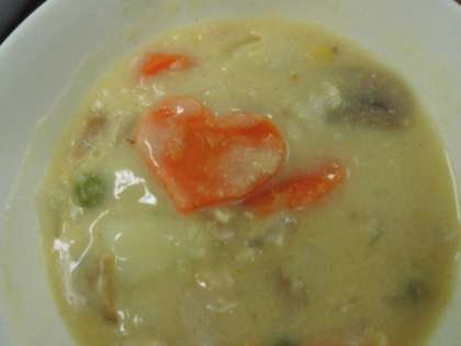 コーンクリームシチューはとてもおいしかったのですが、さらにハートや花の形をしたラッキーにんじんが入っていました。入っていた人は、よりおいしく、さらにハッピーな気持ちでいただいたことでしょう。