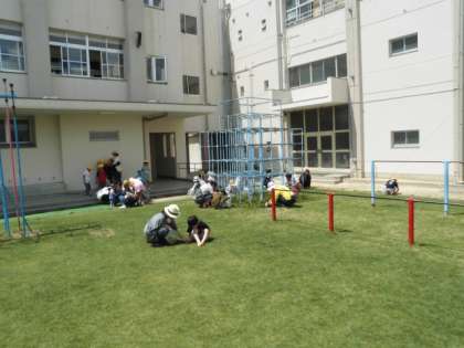 芝生実行委員や地域の皆様の協力もありみんなで作業をしていただきました。
