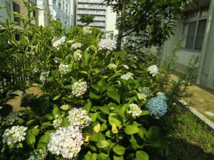 先日のひがももクリーン大作戦ですっかりきれいになったバタフライガーデンに今の時期に咲くアジサイやムラサキツユクサ、小さな実をつけたミカンの木を観ることができます。
