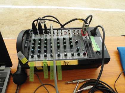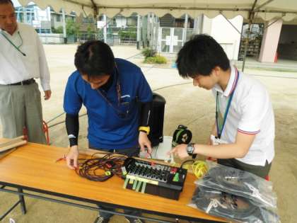 今年の運動会も、はっきりした声や音楽をスピーカーから流すことができます。