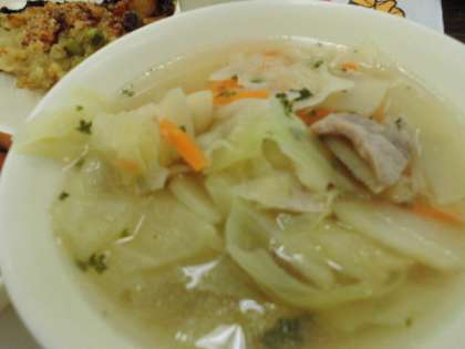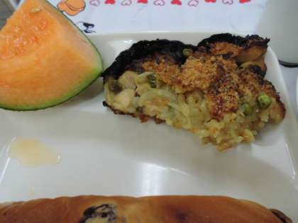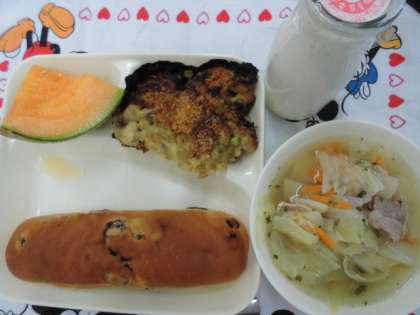 献立は、カレードリア、キャベツのスープ、クインシーメロン、パン、牛乳でした。