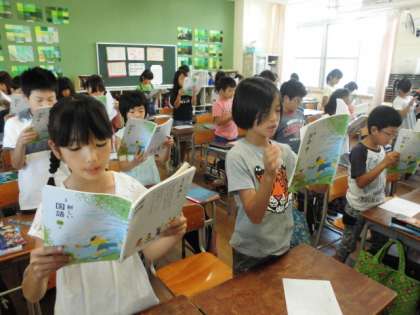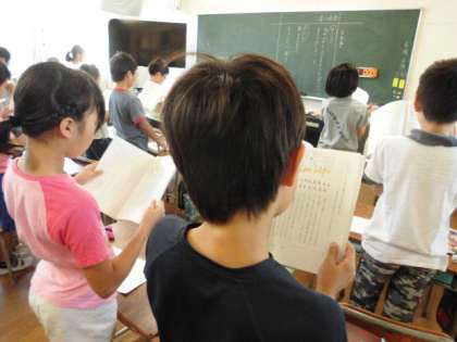 よい姿勢を意識し、はっきりとした声で朗読をしていました。