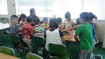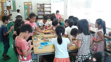 子どもたちは準備していただいた物を使ってしおり作りに夢中になっていました。
