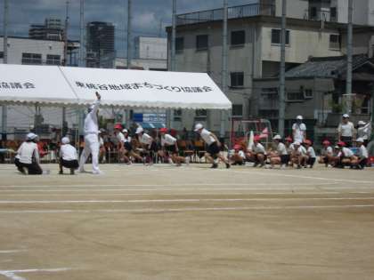 12年生の団体演技「みなスマイル よーいドン」、6年生の短距離走です。