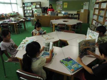 休み時間や図書の時間など今日も多くの児童が図書館を訪れることでしょう。