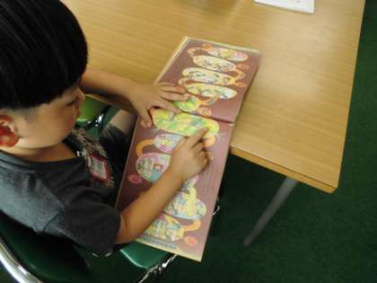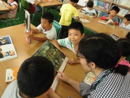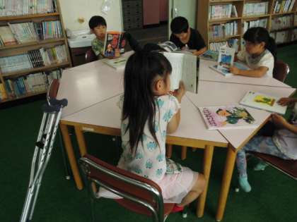 1年生の子どもたちがほぼ貸し出しも終えて、各自がお気に入りの本を選んで読んでいました。