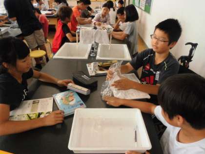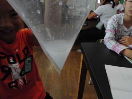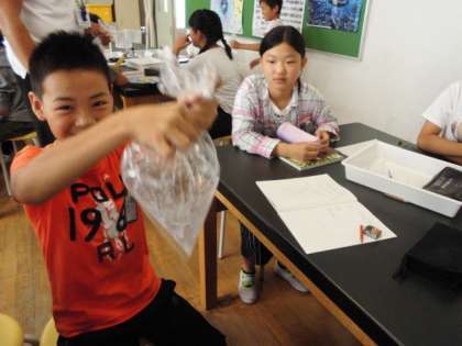 理科室で、6年生が実験をしていました。