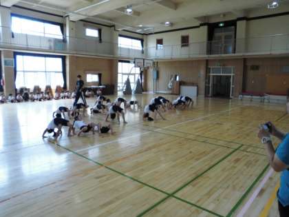 厳しい運動もみんなとリズムに合わせてすれば、楽しくなります。