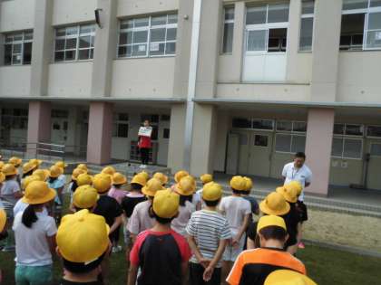 校長からは、土曜授業で行った「ひがももカーニバル」をみんなで楽しく盛り上げたことを大いに評価した内容の話と、プールでの学習に向けての話をしました。