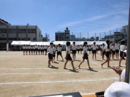 5・6年生による表現運動の終わりは、一列になっての退場でした。