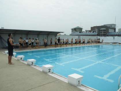 注意をしっかりと聴いて、いよいよプールに入るぞ !