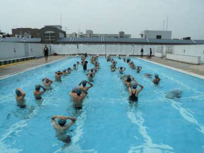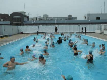 プールに入ると少し興奮気味の子どもたちでしたが、先生の指示をよく聴いて、次々と水慣れの運動が進みました。