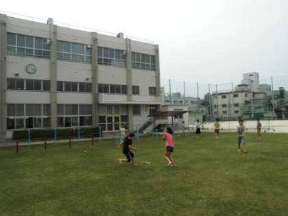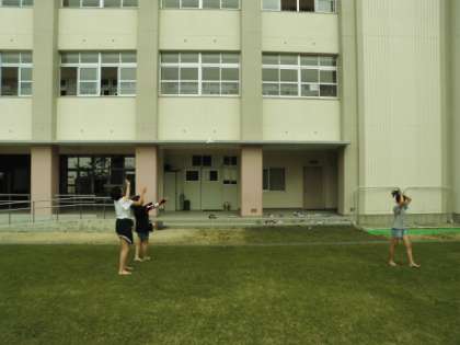 理科室で仕上げたブーメランを芝生に出て飛ばしました。