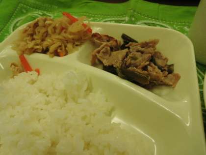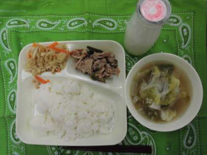 豚肉にはピーマン・切干大根には人参・すまし汁には えのき茸・