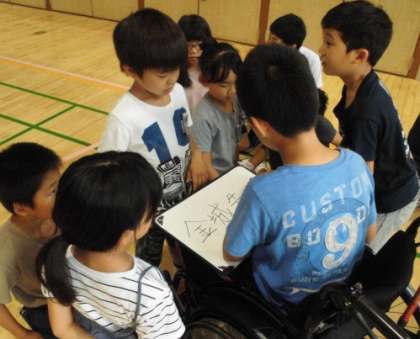 各縦割り班グループに分かれ、ヒント3つで先生を当てます。