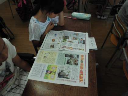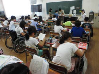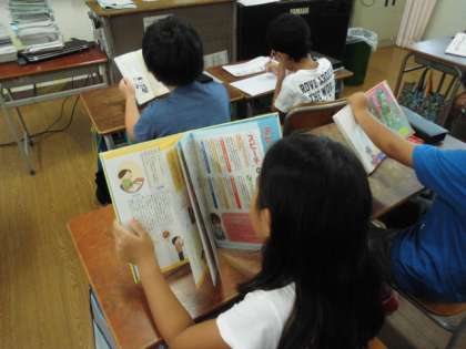4年生の教室では、すでに課題のプリントを終えて、各自が自由課題で、本を読んだり、プリントのやり直しや子ども新聞を読んだりしていました。