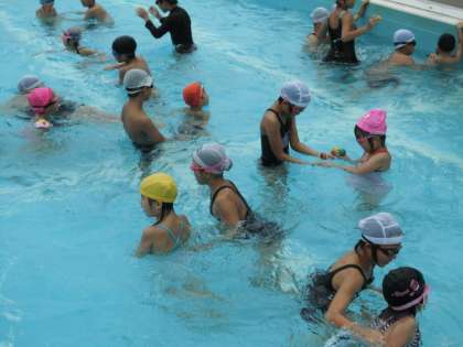プール交流を通して、お互いの距離が一気に縮まるとともに信頼関係も芽生えました。