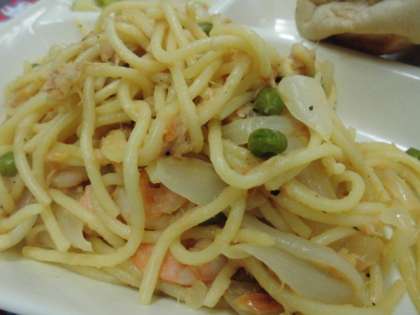 シーフードスパゲッティは、えびとツナの風味がよく出ており、トマトとバジルともよく合ってとてもおいしくいただきました。