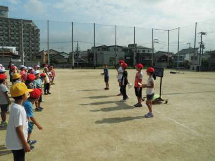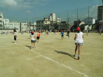 今朝は、集会委員会児童による「増えオニごっこ」を運動場で行いました。