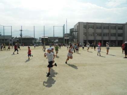 蒸し暑い中、子どもたちは走り回っていました。