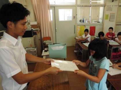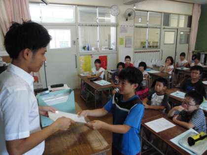 4年1組では、一人ずつ名前を呼ばれて通知表を手渡されていました。