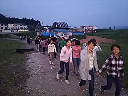 ナイトハイキングへ出発しました。全員元気です。