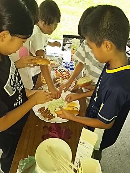 活動班ごとにカートンドッグ作りが始まりました。