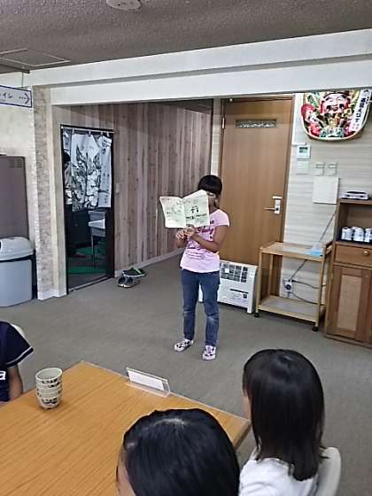 食事を完食し、係児童がこれからの予定を伝えています。全員元気です。