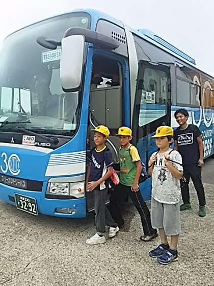 バスに乗り込みます。
