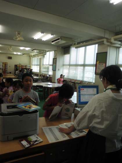 早速、本の貸し出しをする子ども、読みたい本を選んで読んでいる子ども等いろいろです。