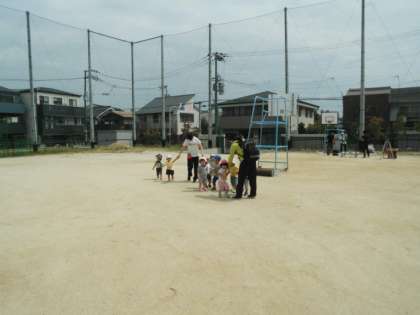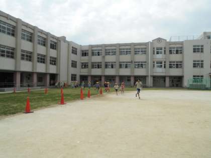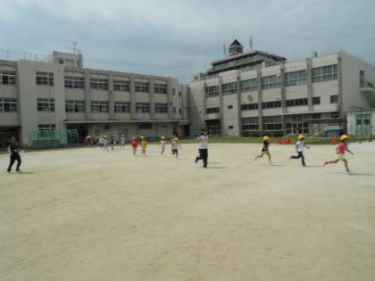 子どもたちは校内放送に従って、まずは自分の身の安全確保。次に避難指示で運動場に一次避難してきます。これは、幼児の園も時間設定や地震の想定も同じようにして行っています。