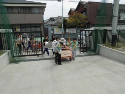 最後に幼児の園の乳児たちが避難してきて、全員避難完了しました。