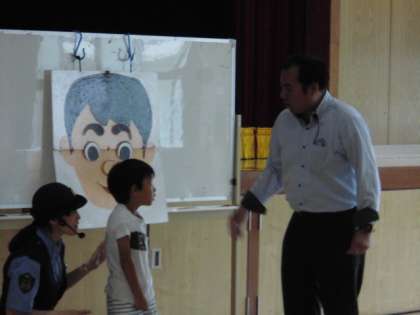 実際に危ない状況になったときの行動ができるか、代表児童がチャレンジしました。
