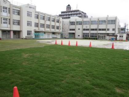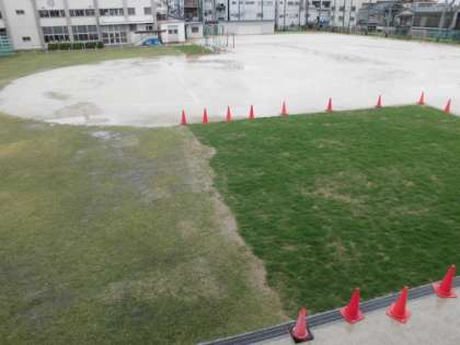 芝生で、運動場の土砂の流失を防いでいます。