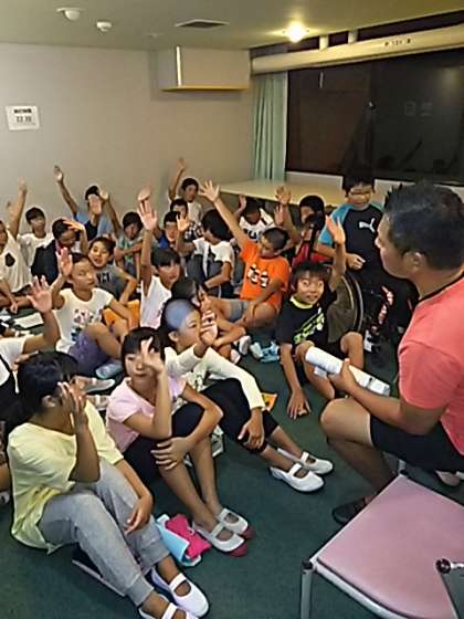 予定の時刻5分前に全体反省会が始まりました。楽しかったことや良かったことがいっぱいあったようです。