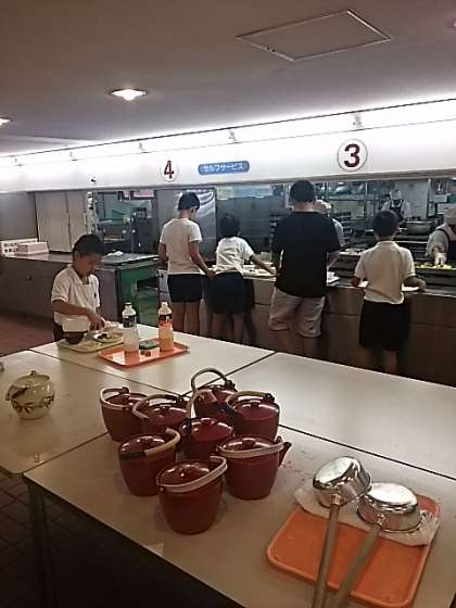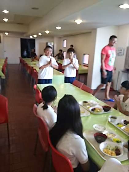 セルフサービスの要領を身につけた子どもたちは、スムーズに行動しています。食事係の子どもは余裕もあり、パフォーマンスつきのあいさつをしました。みんな調子がよいです。