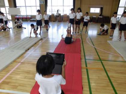 タブレットの動画・録画機能を使って、自分の技のできばえを観察します。
