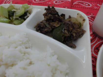 プルコギは、韓国風焼き肉です。いろいろな調味料や材料を使って牛肉、タマネギ、ピーマンに下味をつけています。甘辛くて、とてもおいしく、ごはんがどんどんすすみました。