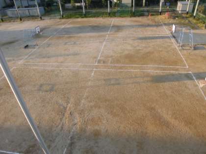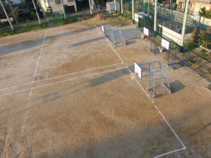 校長経営戦略予算(加算)で、購入したバスケットゴールをバスケットボールの授業で活かすために3面の広いコートをとりました。