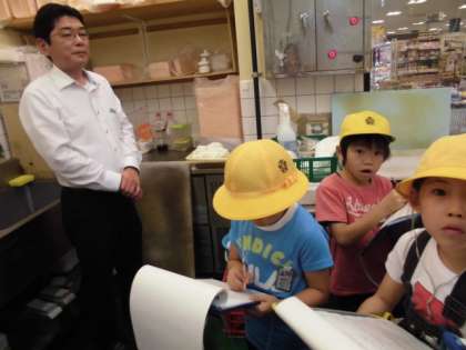 スーパーマーケットでも、ふだんは入れないところに入れていただいたりして熱心に見学をしていました。