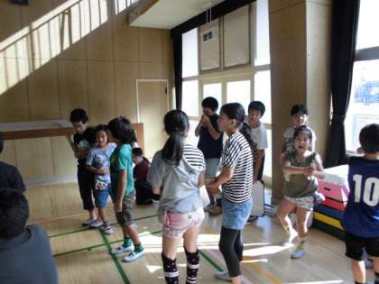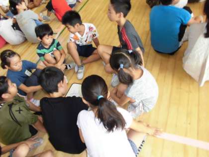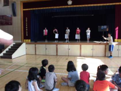 名前をひらがな一文字ずつ並べかえられたものから、先生の名前を当てます。
