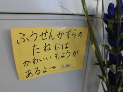 1年1組と2組教室の間(廊下)に秋の季節感を味わえるコーナーがありました。