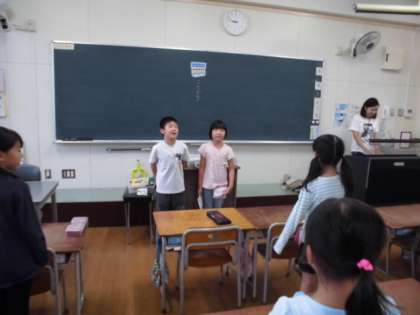 児童朝会から帰ってきて、各教室では朝の会が始まりました。